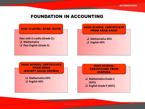 The programme focuses on building strong fundamentals in accounting, business, mathematics, and communication. With a balance of academic learning and soft skills development, students will be well-prepared for the transition into degree-level studies.